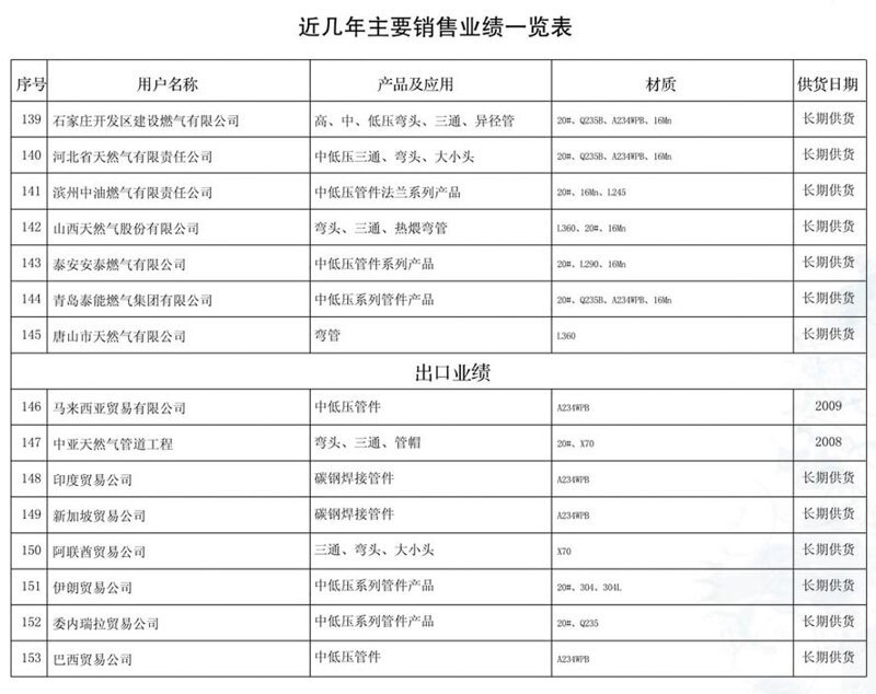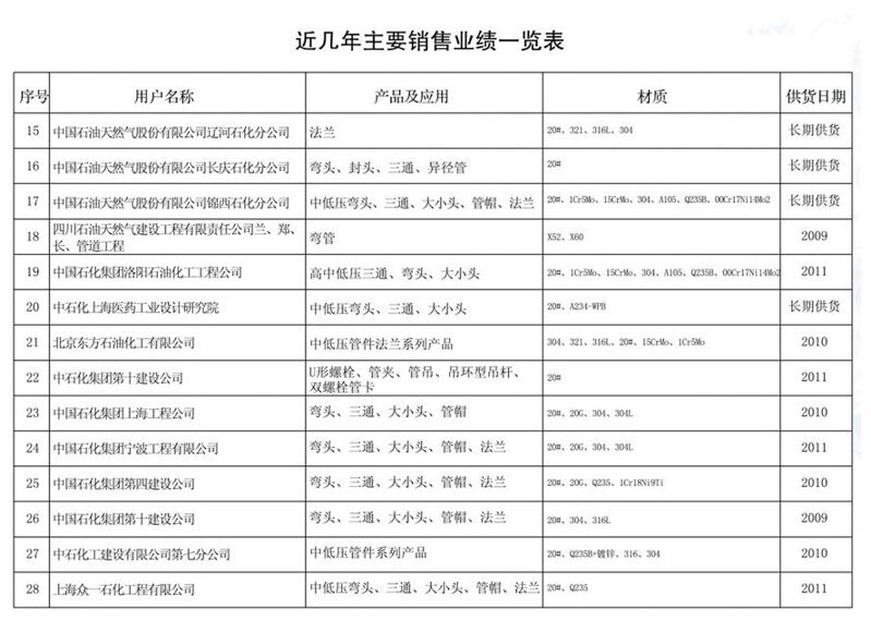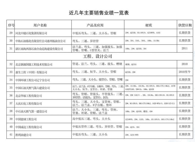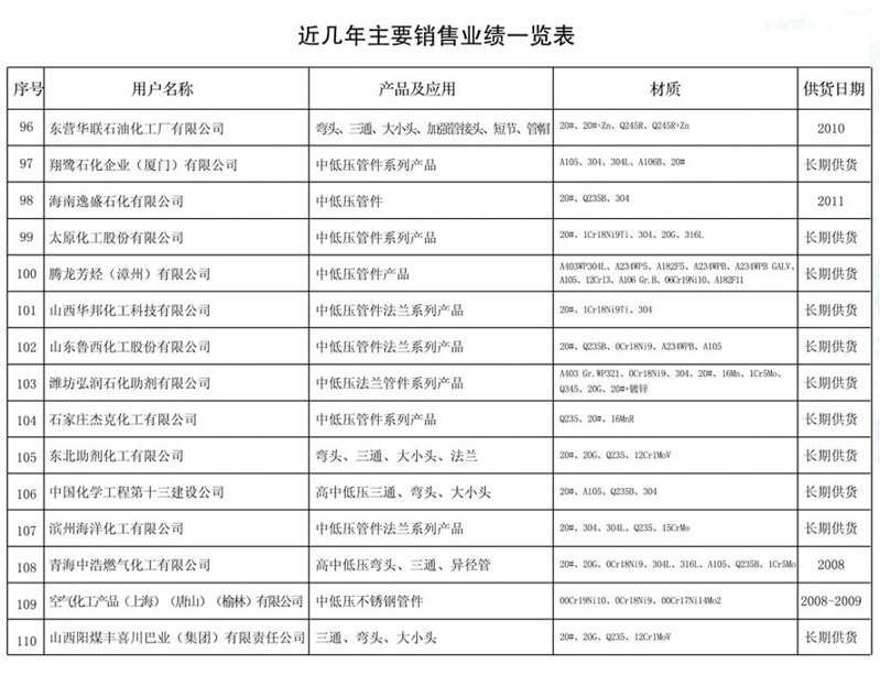 近幾年主要銷(xiāo)售業(yè)績(jī)一覽表