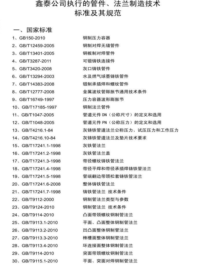 0317-6320076鑫泰公司管件、法蘭標準及其規范