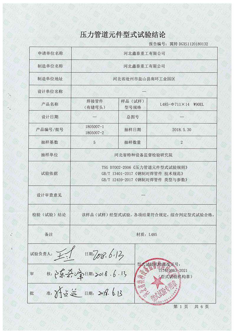 標題:特種設備形式試驗報告(有縫彎頭)