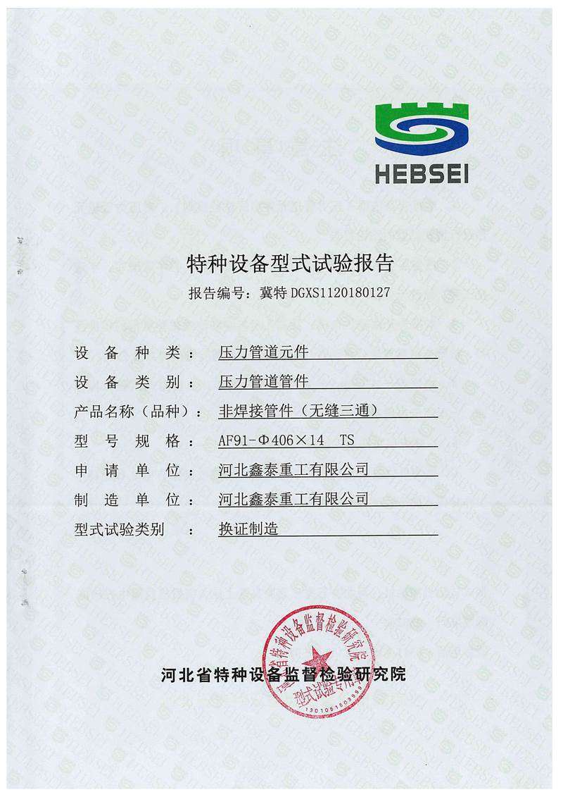 特種設(shè)備型式試驗(yàn)報(bào)告(無縫三通)